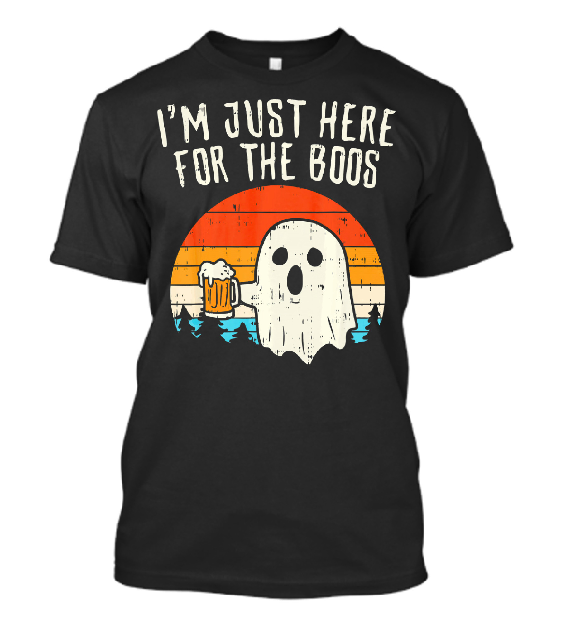 The I'm Just Here For The Boos Retro Ghost With Beer Sunset T-shirt is designed for everyday wear and a consistent fit. Fabric is pre-shrunk ring-spun cotton with durable stitching. See the size chart below for exact measurements.