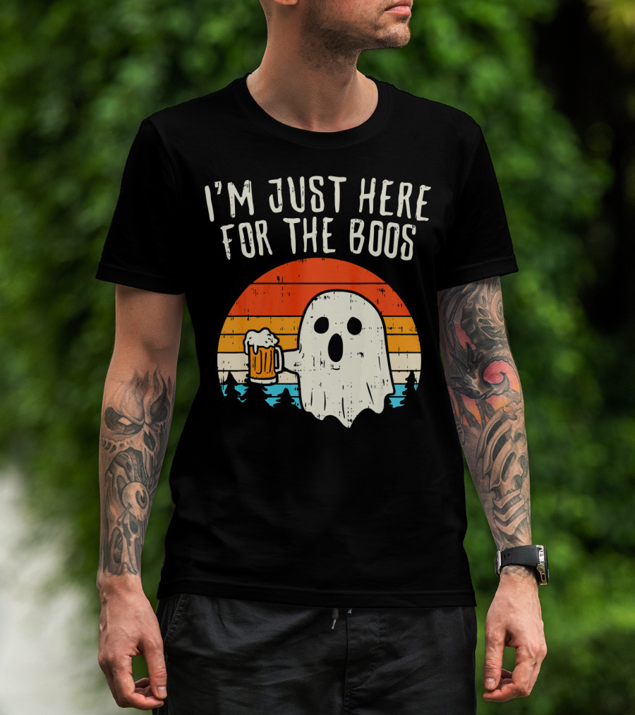 I'm Just Here For The Boos Retro Ghost With Beer Sunset T-Shirt