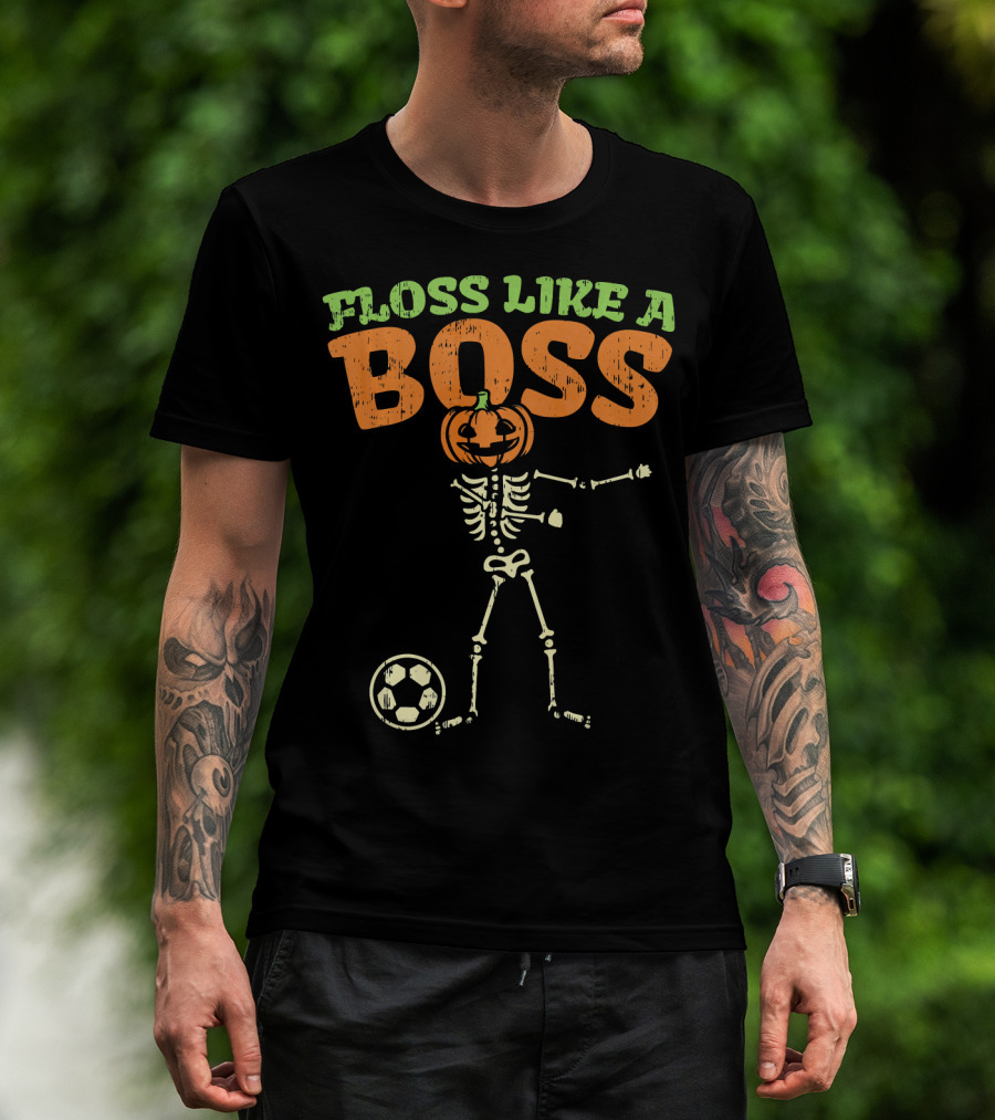 Floss Like A Boss Pumpkin Skeleton Soccer T-Shirt