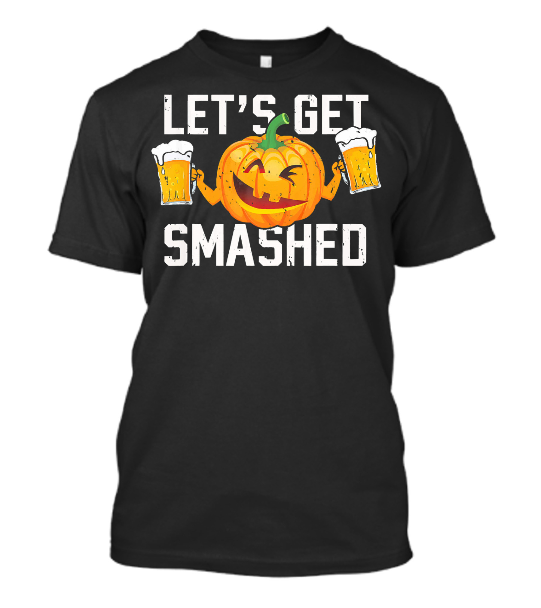 Let's Get Smashed Pumpkin With Beer Mugs Halloween Humor T-Shirt