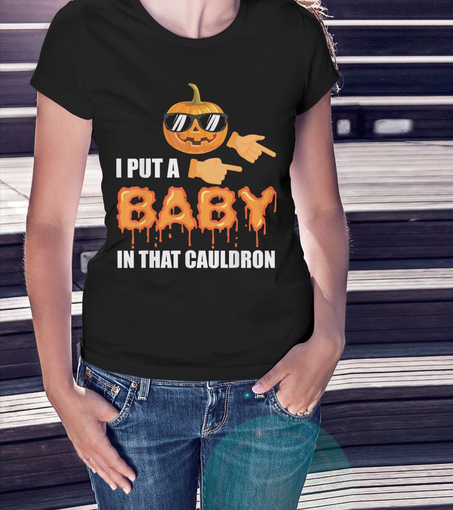 Mens Halloween Pregnancy Dad I Put A Baby In That Cauldron T-Shirt