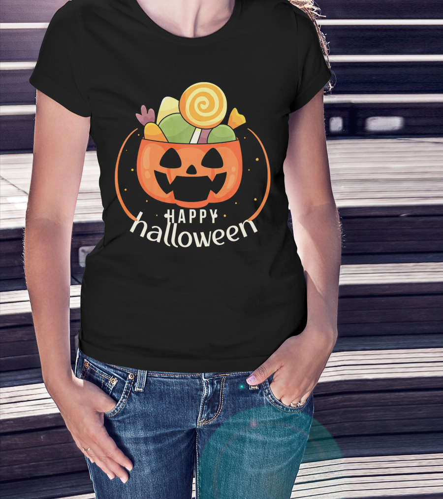 Happy Halloween Pumpkin Orange JackOLantern Candy Bucket T-Shirt