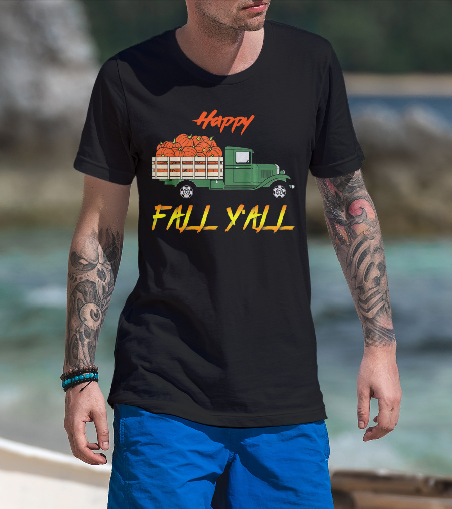 Happy Fall Yall Vintage Pumpkin Truck Classic Green Vehicle With Pumpkins T-Shirt