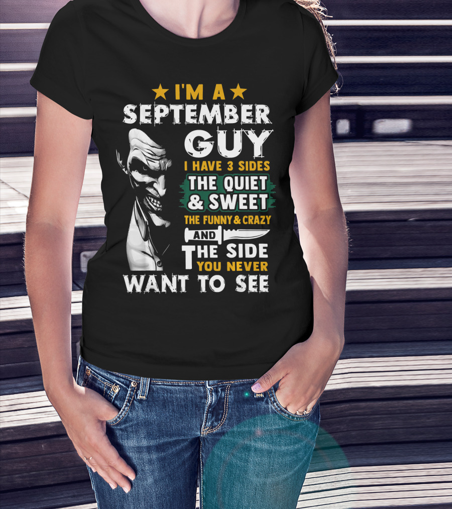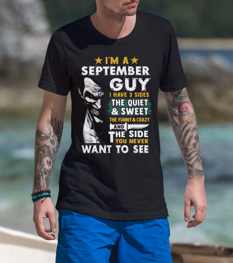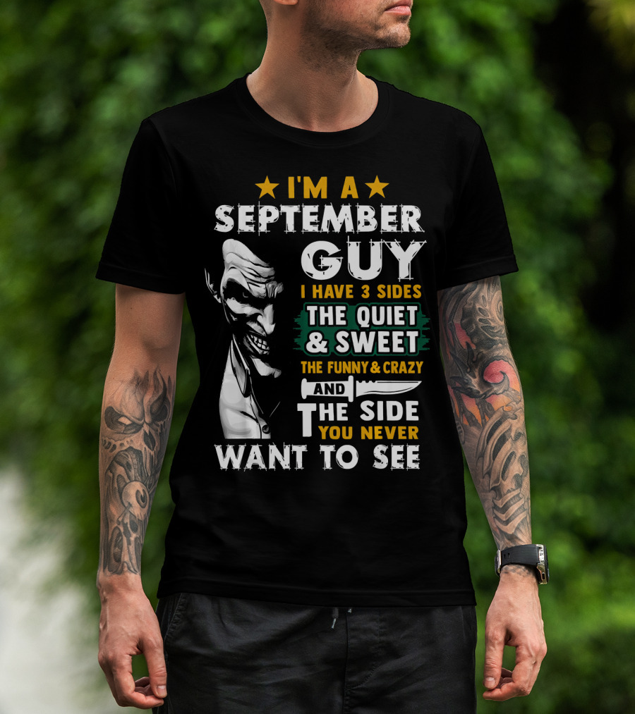 I'm A September Guy I Have 3 Sides The Quiet And Sweet The Funny And Crazy And The Side You Never Want To See T-Shirt