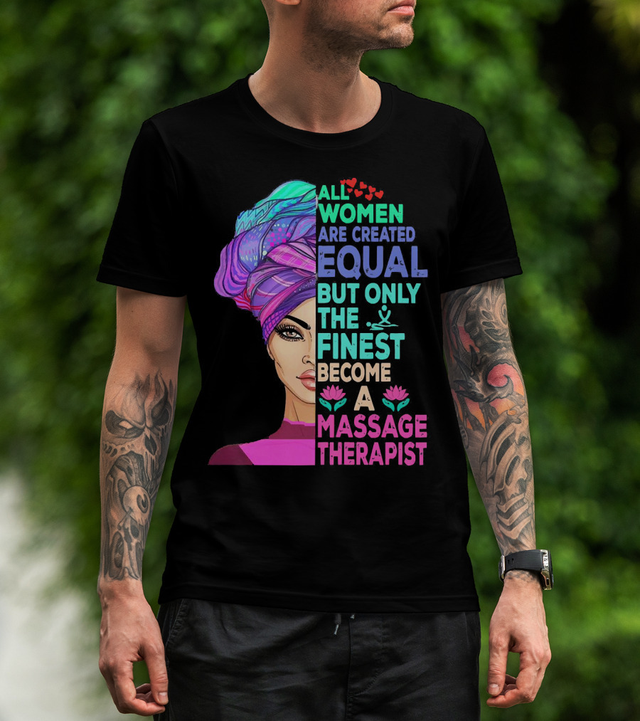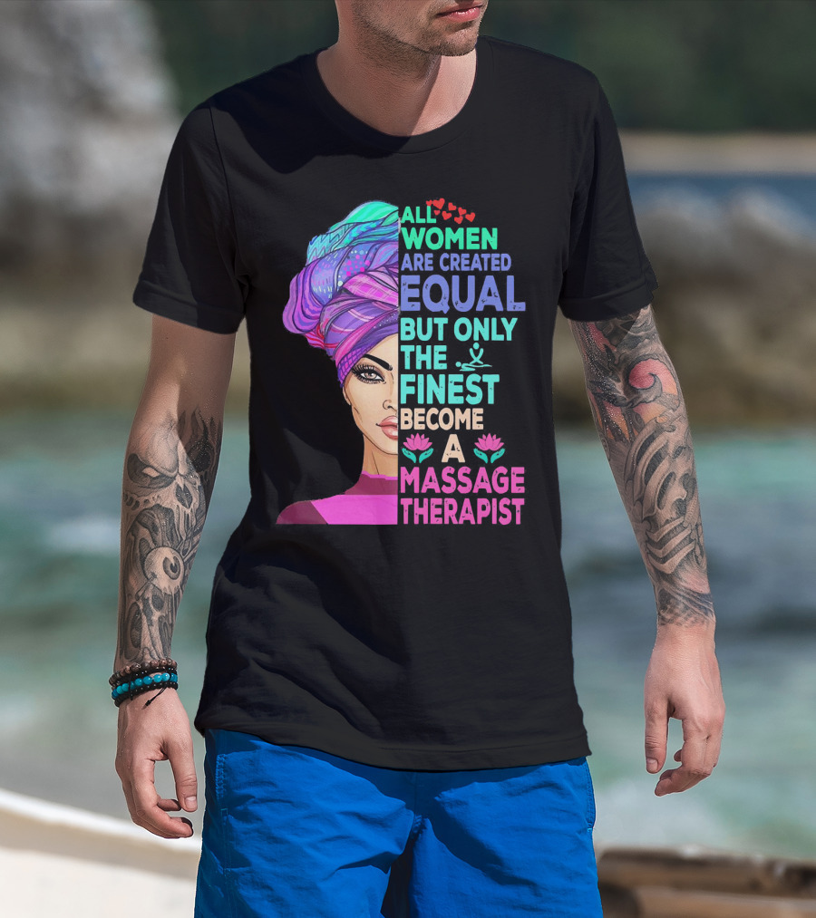 All Women Are Created Equal But Only The Finest Become A Massage Therapist Lotus Hearts Woman Half Face T-Shirt