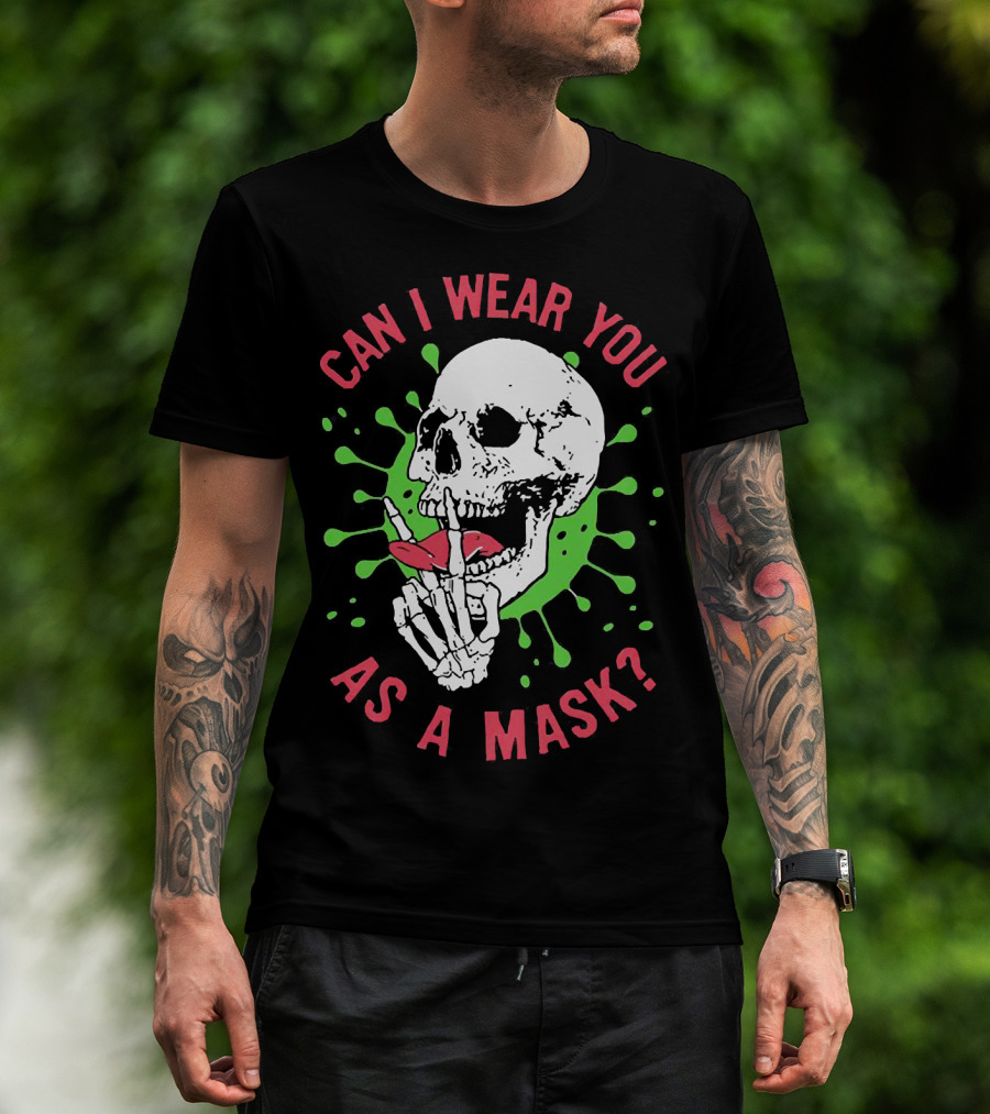 Can I Wear You As A Mask Skeleton Holding Lipstick With Green Splatter T-Shirt
