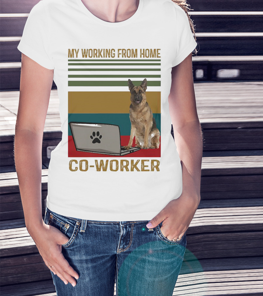My Working From Home Co-Worker With Paw Print Laptop And German Shepherd T-Shirt