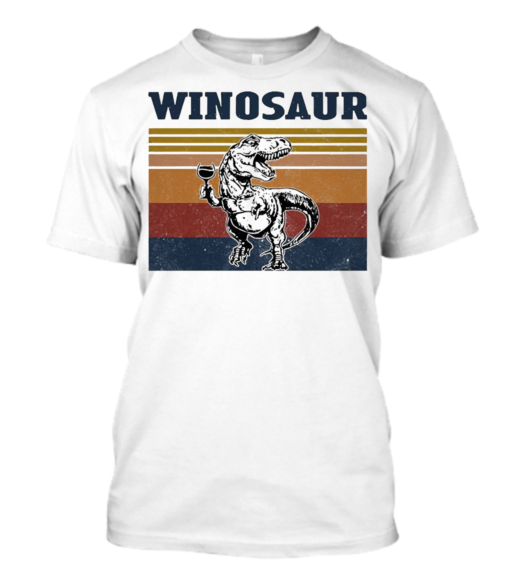 The WINOSAUR T-Rex Drinking Wine Retro Stripes T-shirt is designed for everyday wear and a consistent fit. Fabric is pre-shrunk ring-spun cotton with durable stitching. See the size chart below for exact measurements.