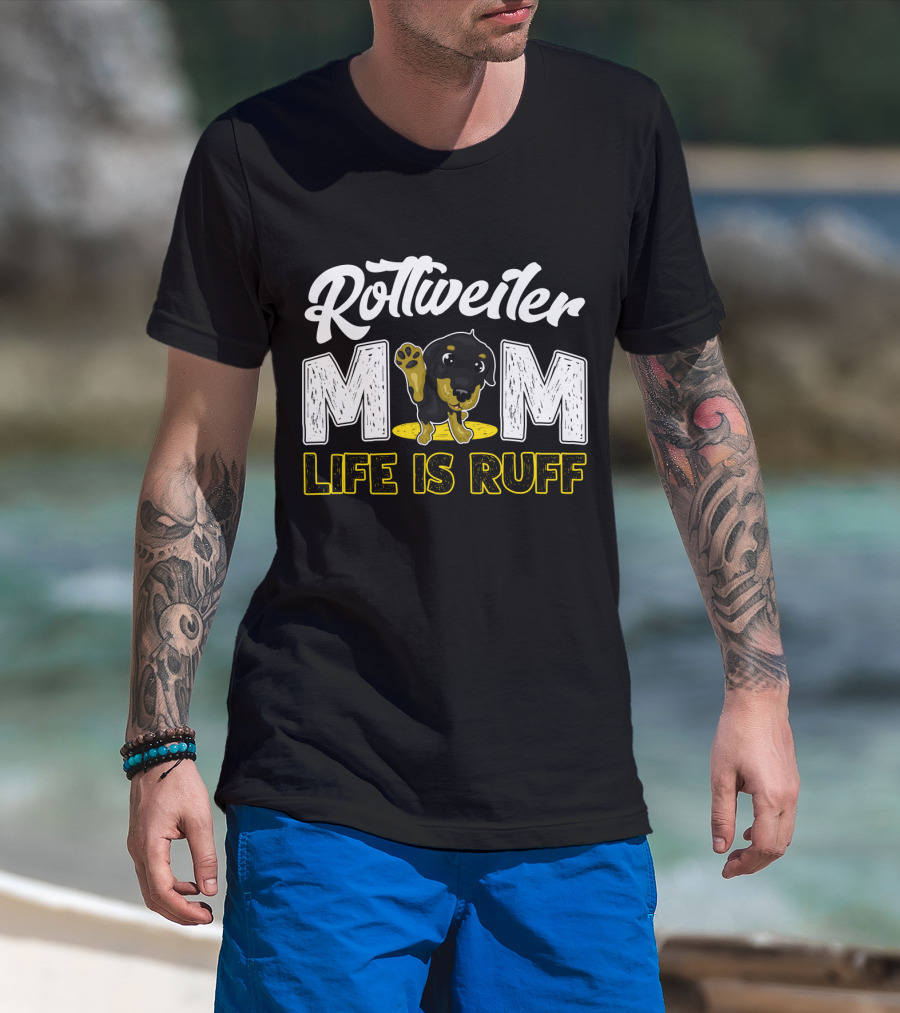 Rottweiler Mom Life Is Ruff Cute Paw Print Puppy T-Shirt