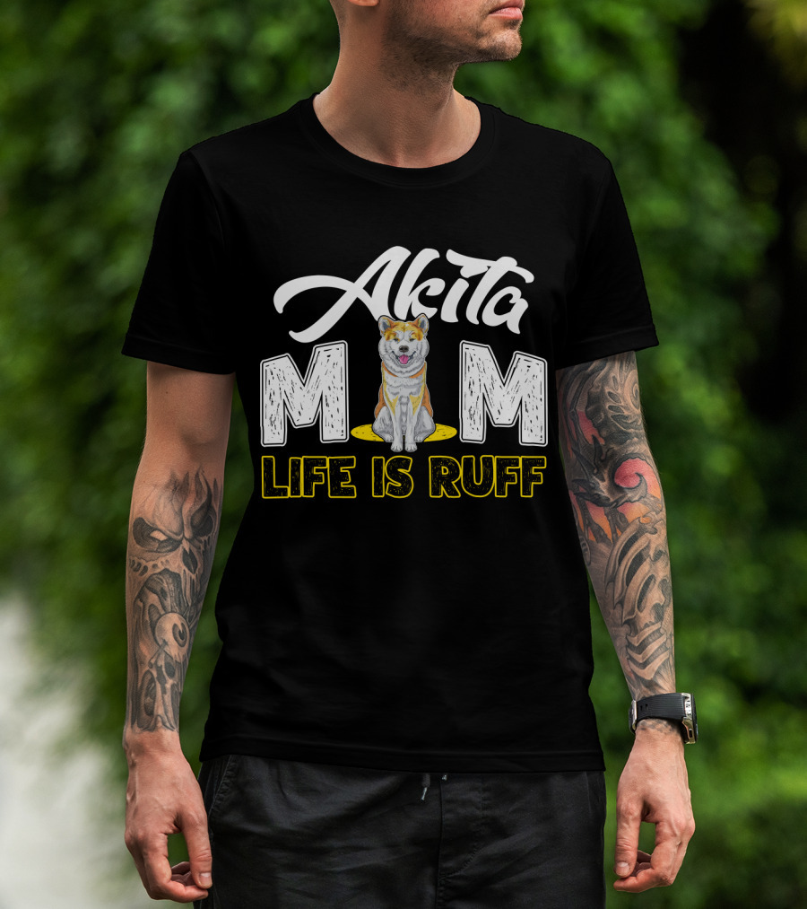 The Akita Mom Life Is Ruff Dog T-shirt is designed for everyday wear and a consistent fit. Fabric is pre-shrunk ring-spun cotton with durable stitching. See the size chart below for exact measurements.