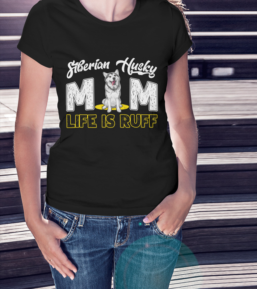 Siberian Husky Mom Life Is Ruff Dog Mom Pawprints T-Shirt