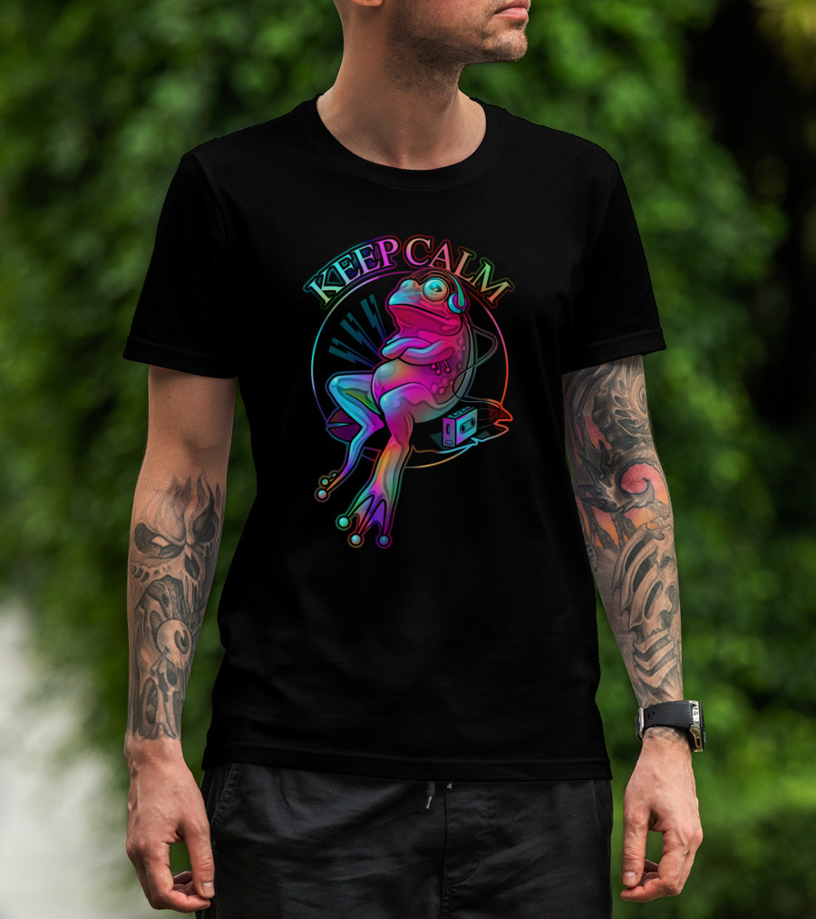KEEP CALM Frog With Headphones And Retro Boombox Vibes T-Shirt