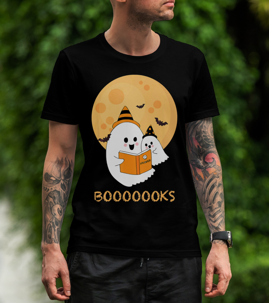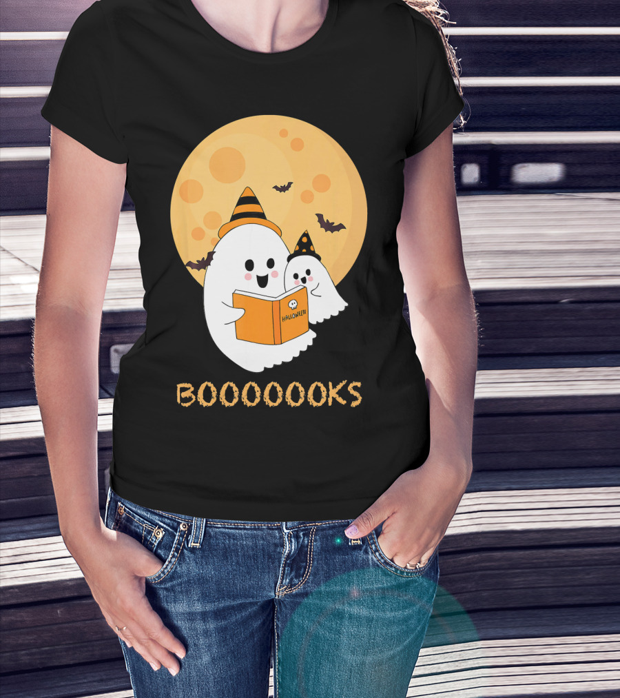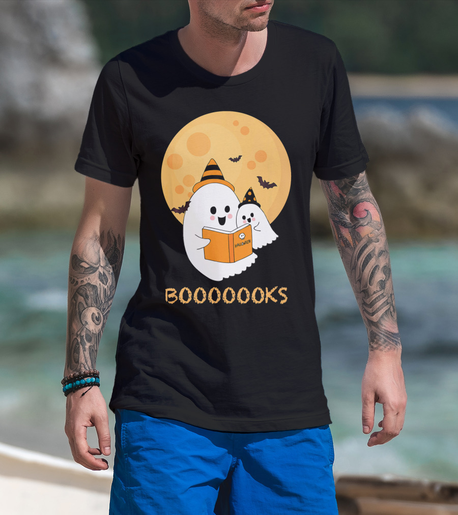 Halloween Ghosts Reading Boooooks Under Full Moon T-Shirt
