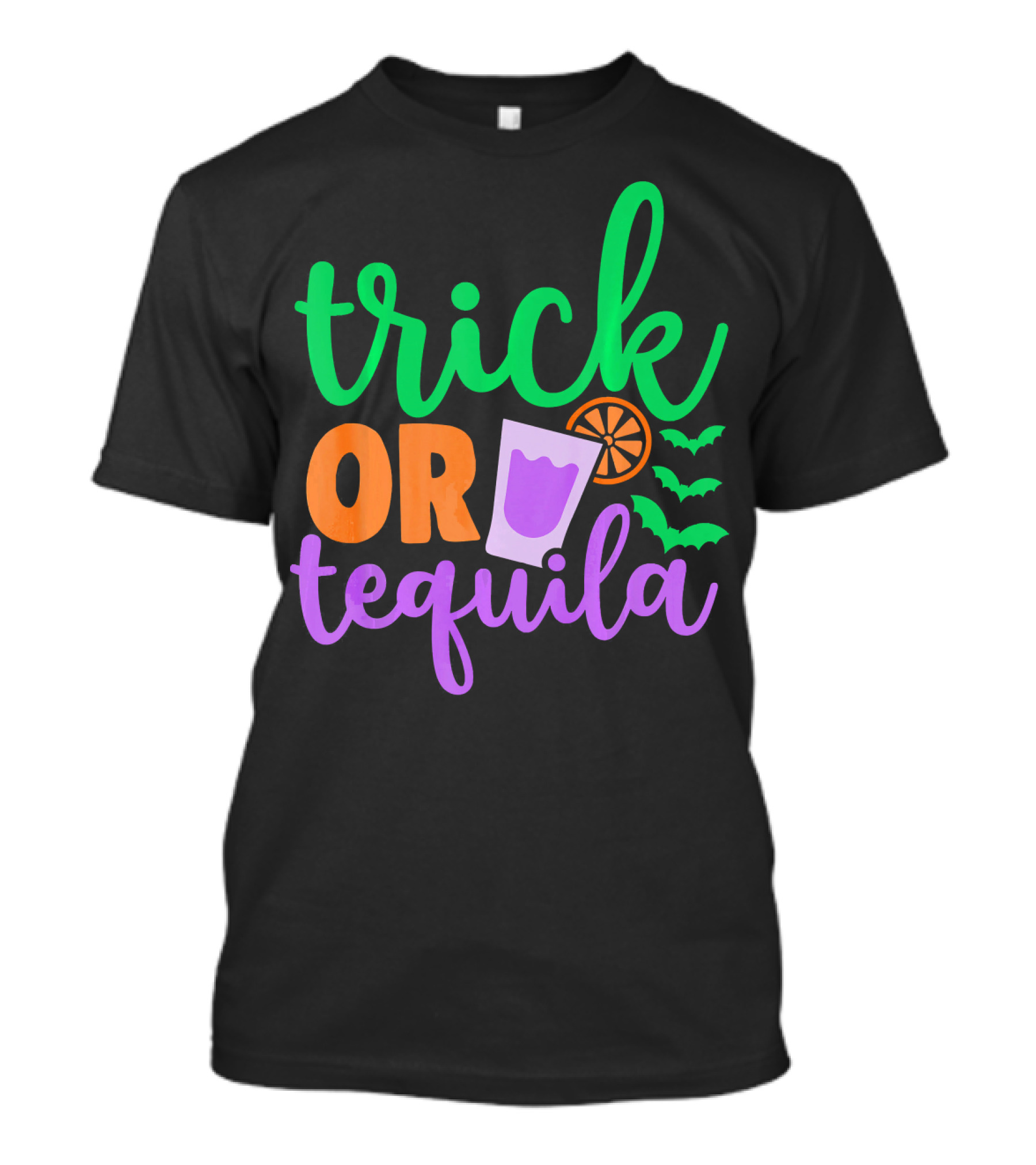 The Trick Or Tequila Halloween Funny Family Bats Drink Orange Lime T-shirt is designed for everyday wear and a consistent fit. Fabric is pre-shrunk ring-spun cotton with durable stitching. See the size chart below for exact measurements.