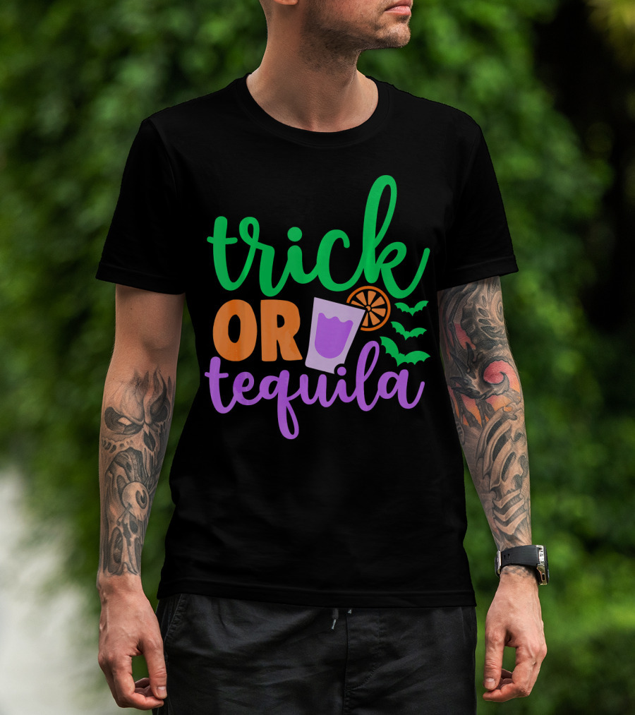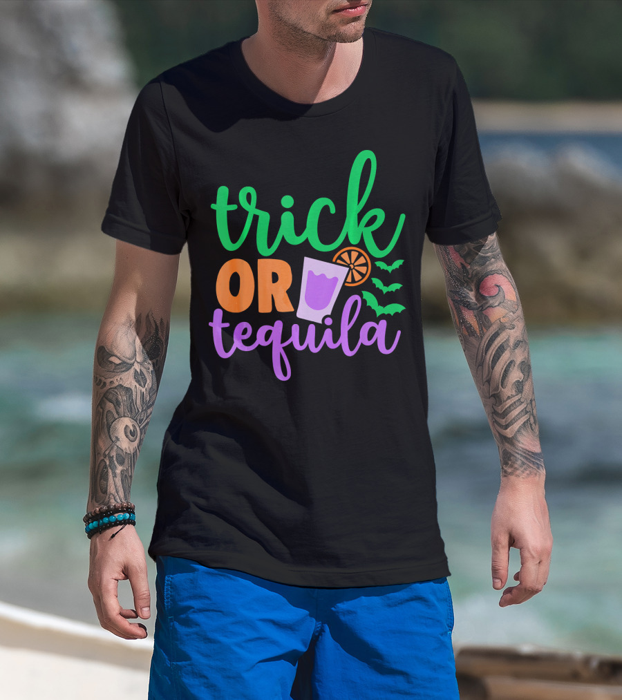Trick Or Tequila Halloween Funny Family Bats Drink Orange Lime T-Shirt