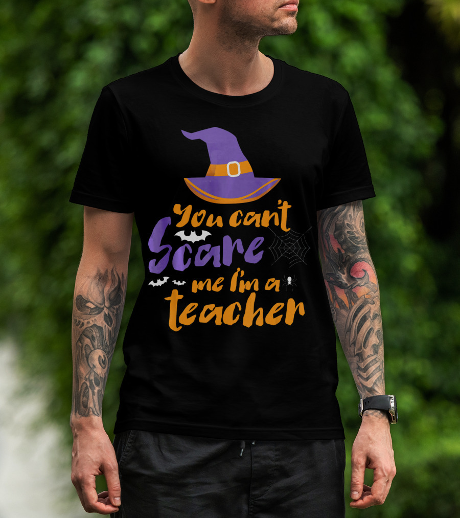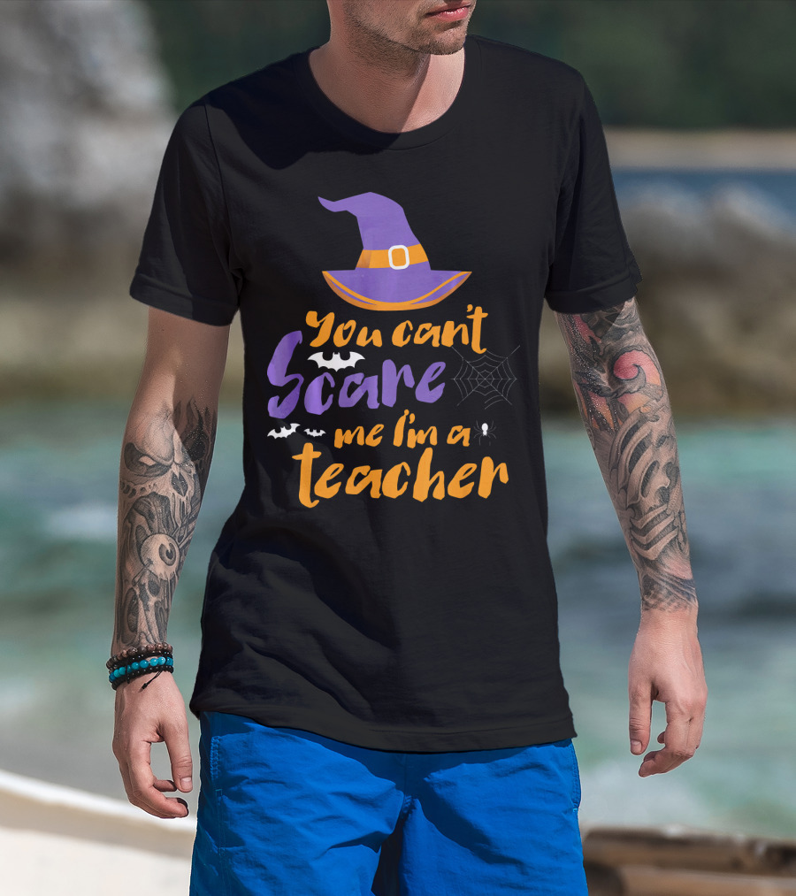 You Can't Scare Me I'm A Teacher Witch Hat Bats Spider Web Halloween T-Shirt