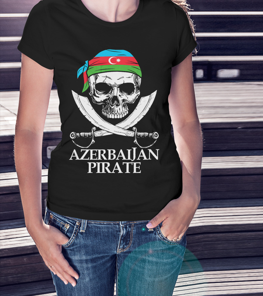 Azerbaijan Pirate Skull Crossed Swords Flag Bandana T-Shirt