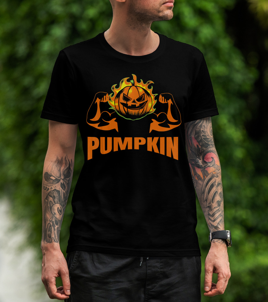 Bodybuilder Pumpkin Halloween Costume Muscles Jack-O'-Lantern T-Shirt