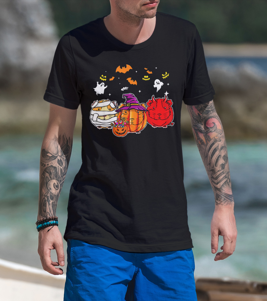 Guinea Pigs Happy Halloween Cute Mummy Witch Devil Pumpkin Ghosts Bats T-Shirt