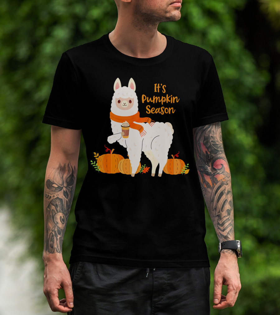 It's Pumpkin Season Llama With Autumn Leaves And Pumpkins T-Shirt