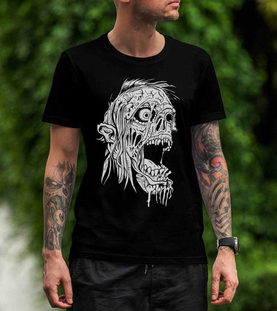 The Zombie Halloween Horror Costume Top Creepy Skull T-shirt is designed for everyday wear and a consistent fit. Fabric is pre-shrunk ring-spun cotton with durable stitching. See the size chart below for exact measurements.