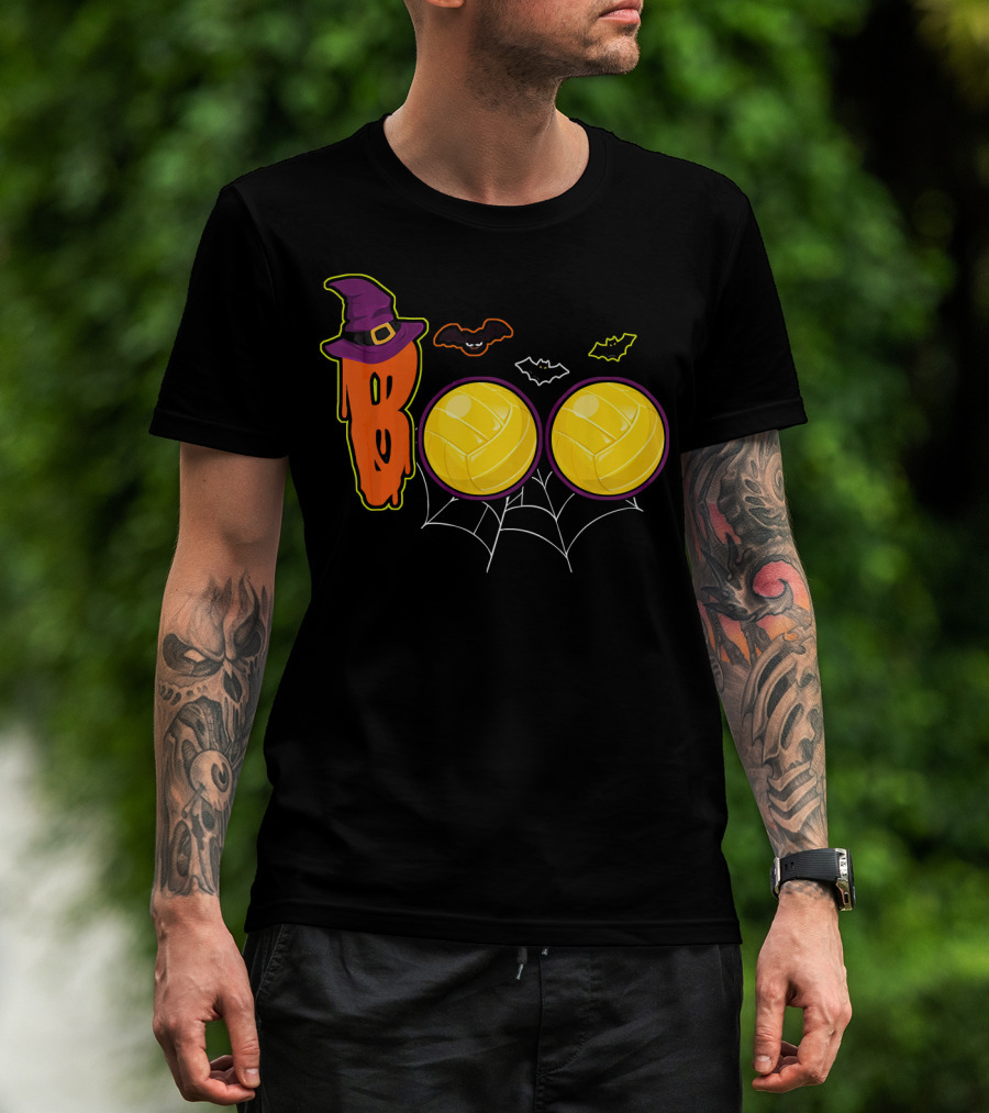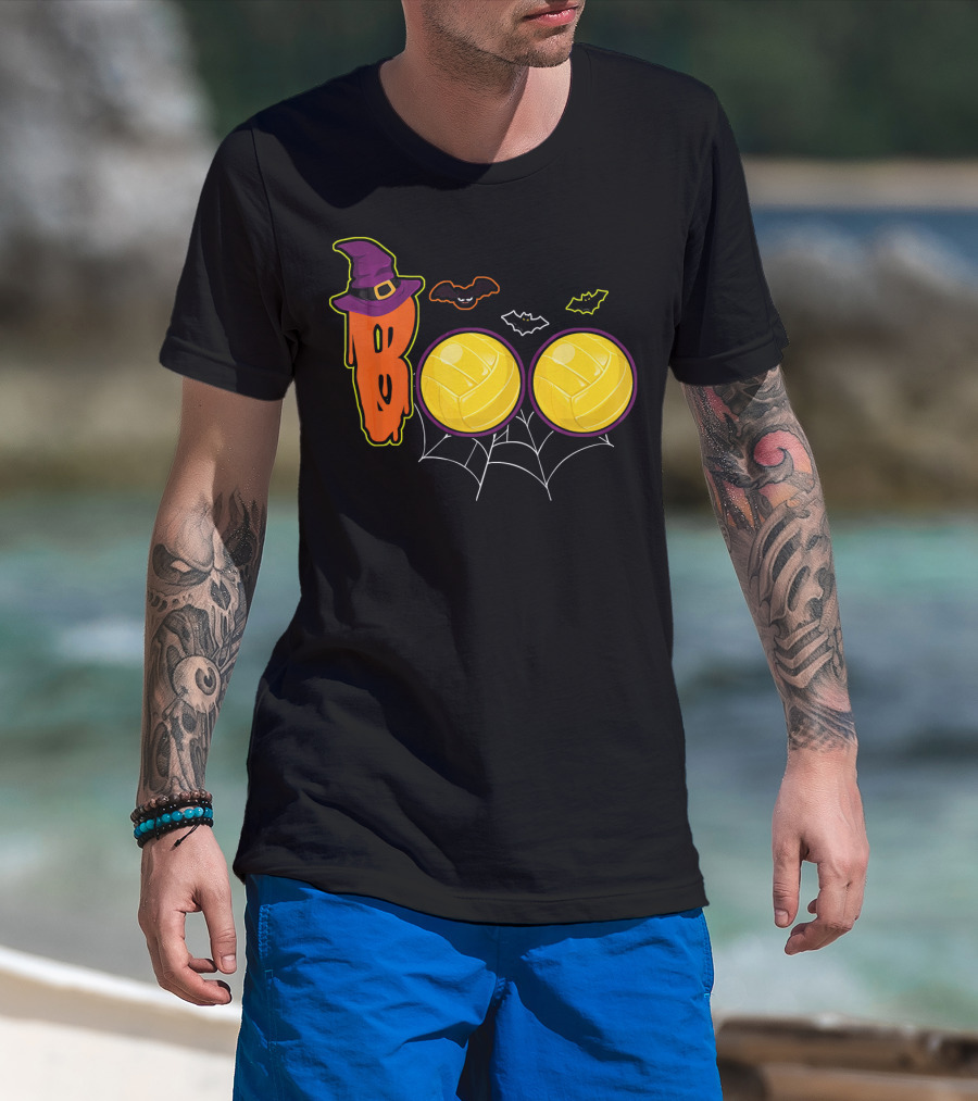 Boo Ghost Volleyball Witch Hat Spiderweb Halloween T-Shirt