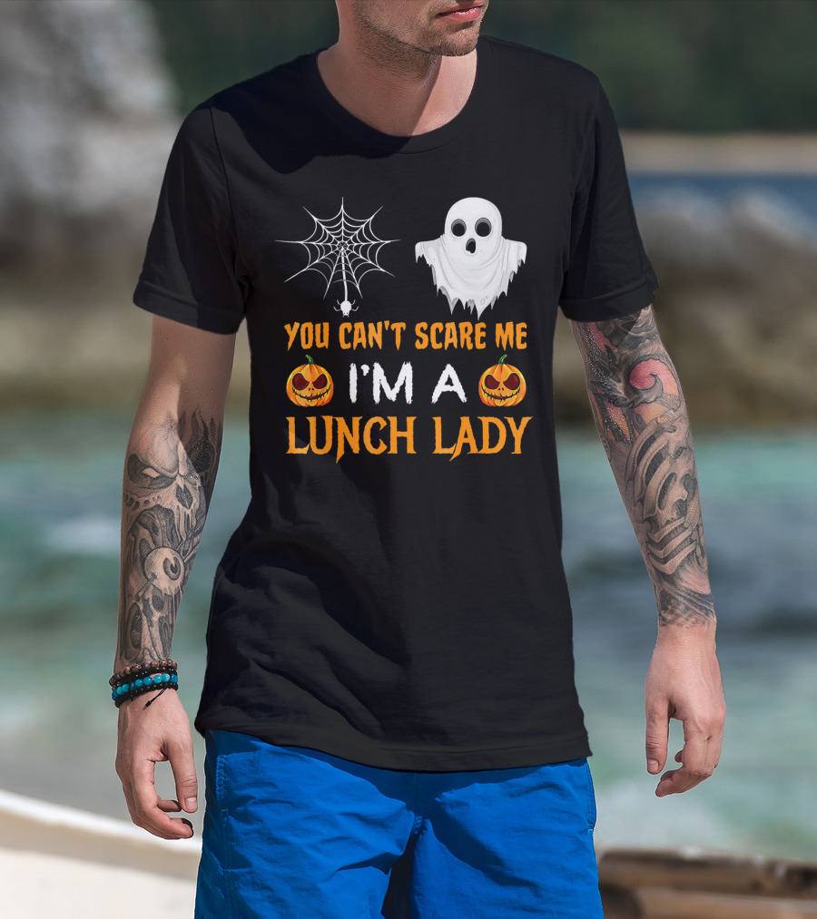 You Can't Scare Me I'm A Lunch Lady Ghost Pumpkin Spiderweb T-Shirt