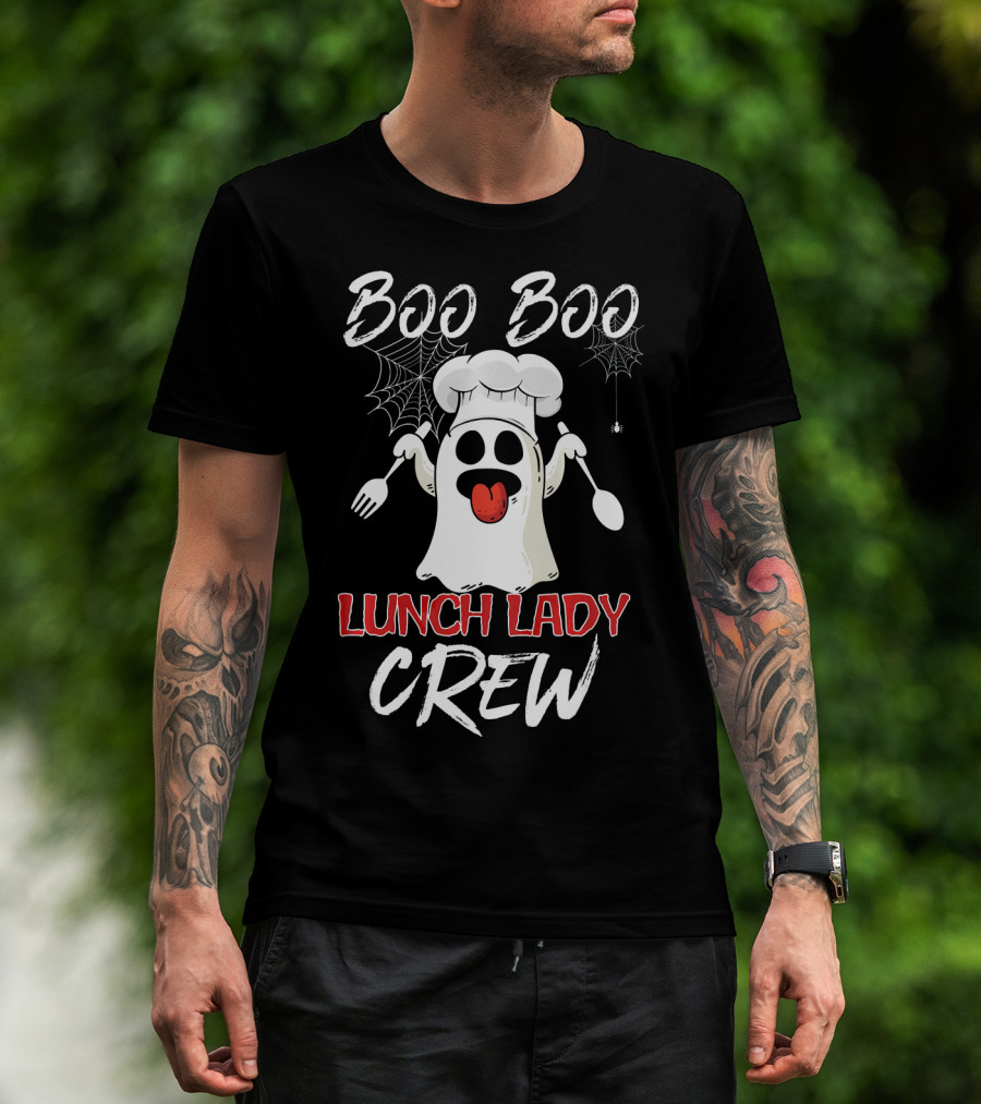 Boo Boo Lunch Lady Crew Funny Chef Ghost With Webs And Utensils T-Shirt