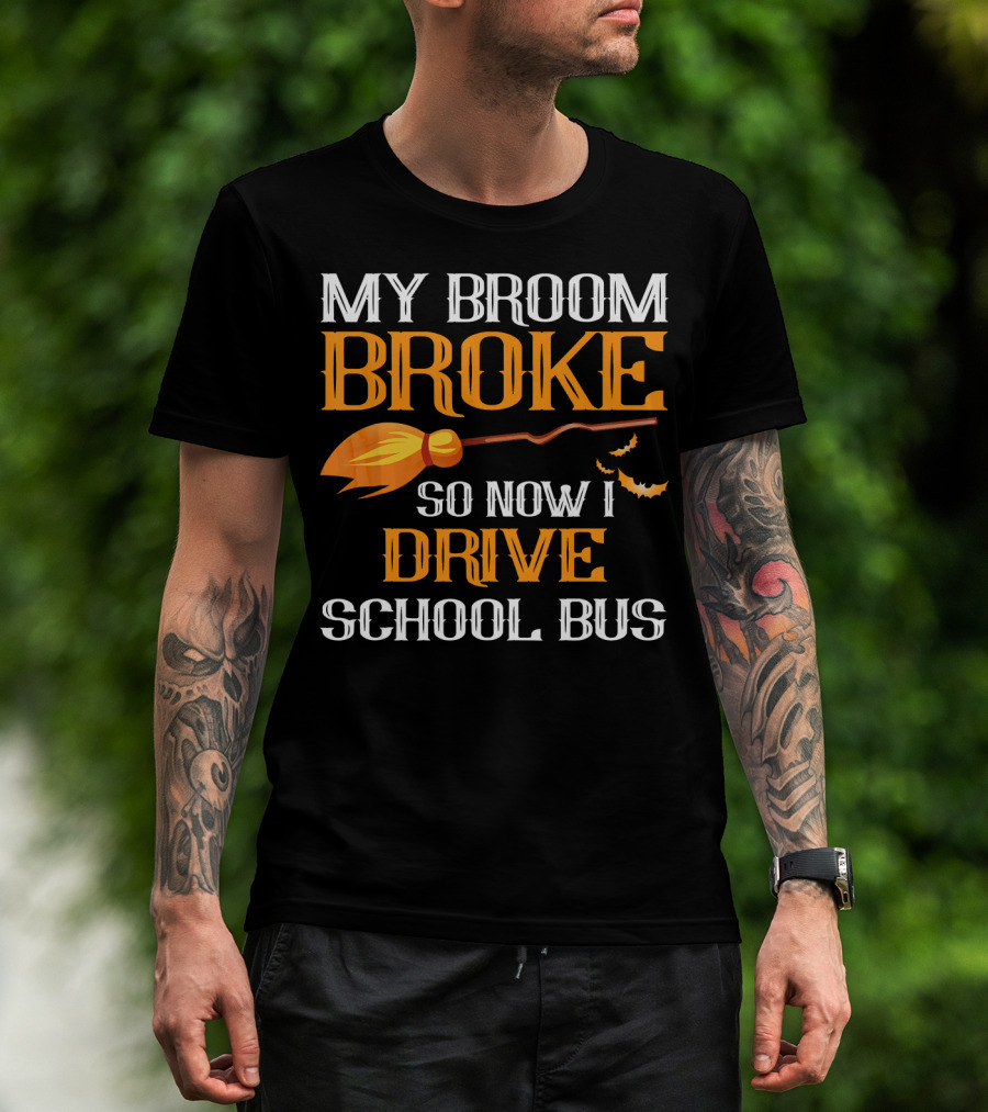 My Broom Broke So Now I Drive School Bus Halloween T-Shirt
