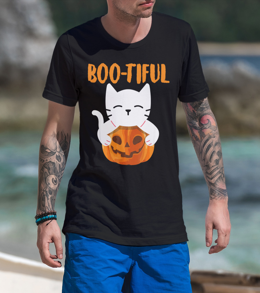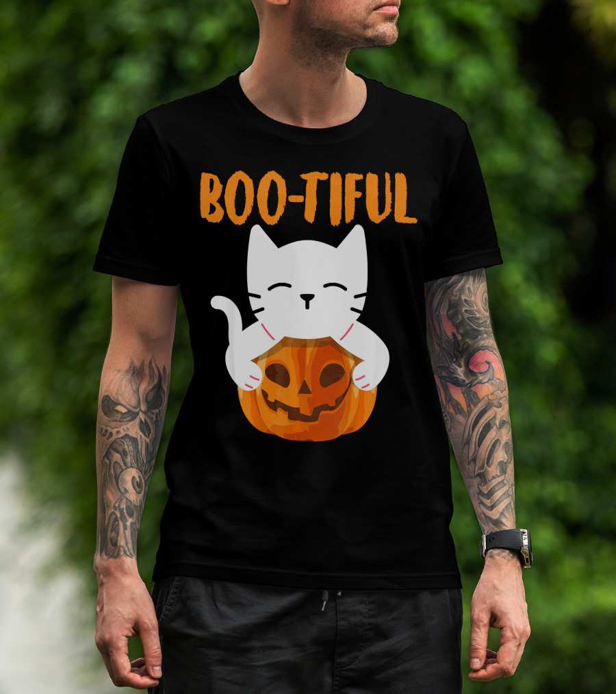 Boo-tiful Cat With Pumpkin Halloween Toddler Girls Boys T-Shirt