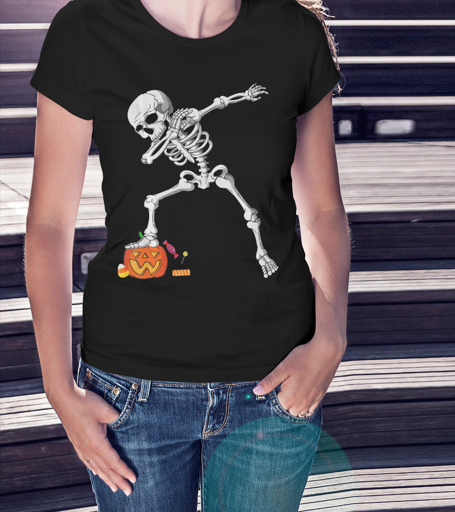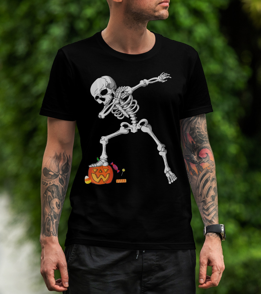 Halloween Skeleton Dabbing On Pumpkin With Candy T-Shirt