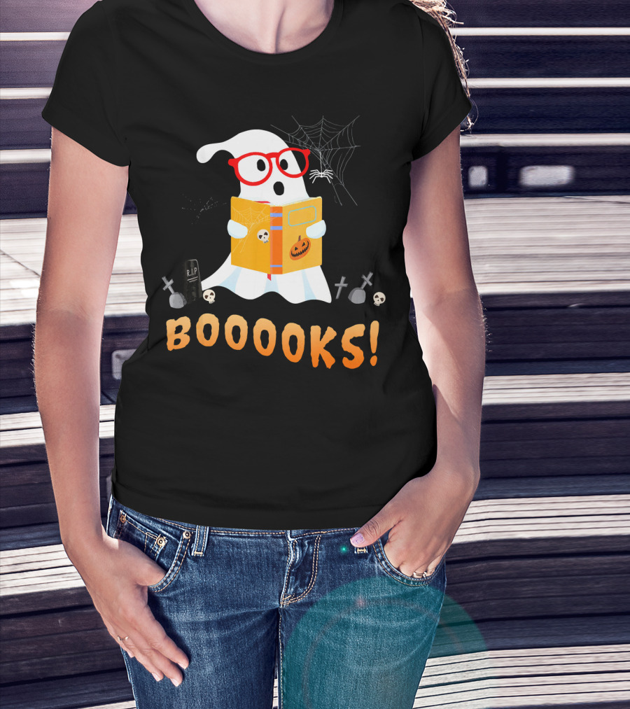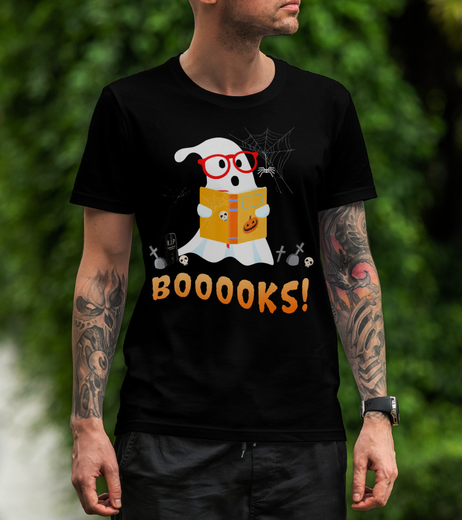 BOOOOKS Funny Teacher Halloween Ghost Reads With Spider Webs T-Shirt