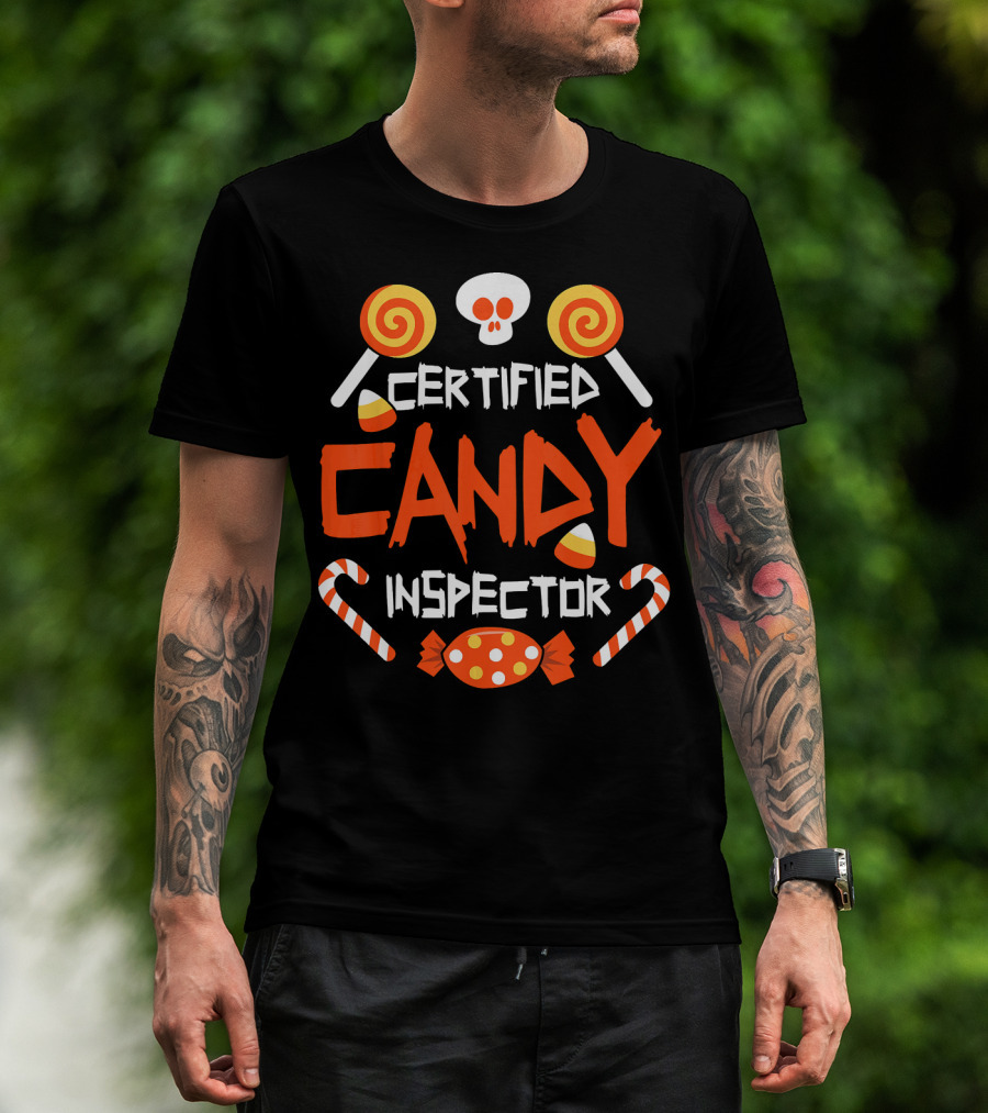 Certified Candy Inspector Halloween Sweets And Skull T-Shirt