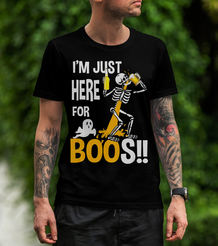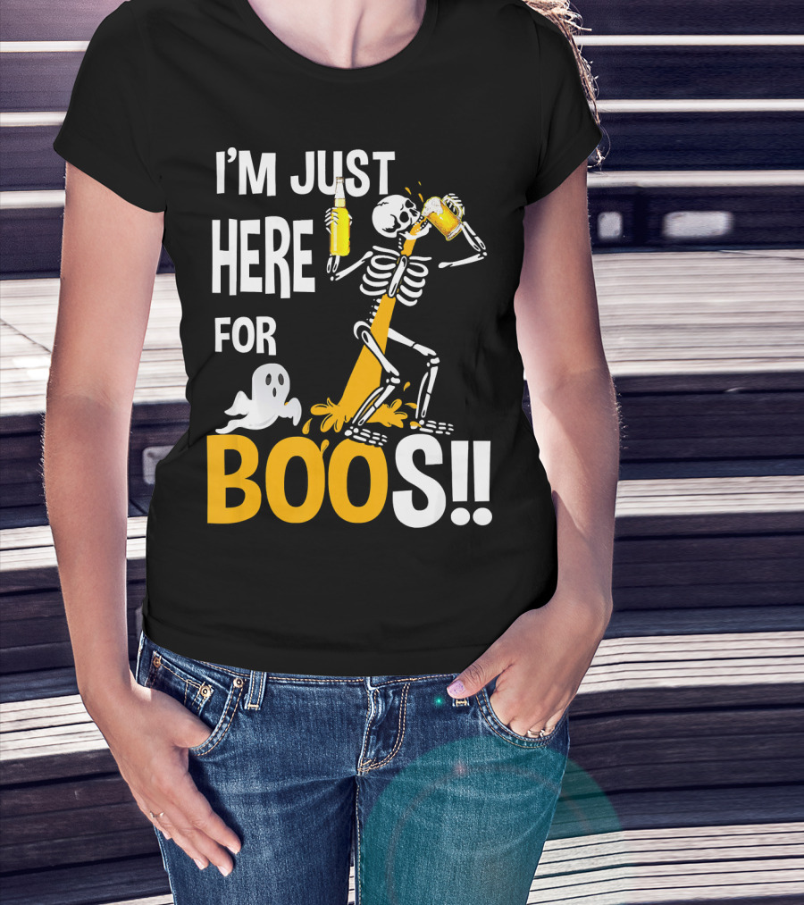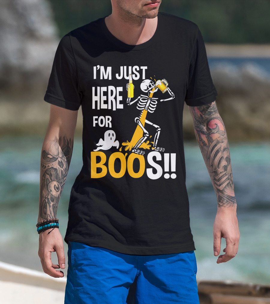 I'm Just Here For The BOOs Skeleton Drinking Ghost T-Shirt