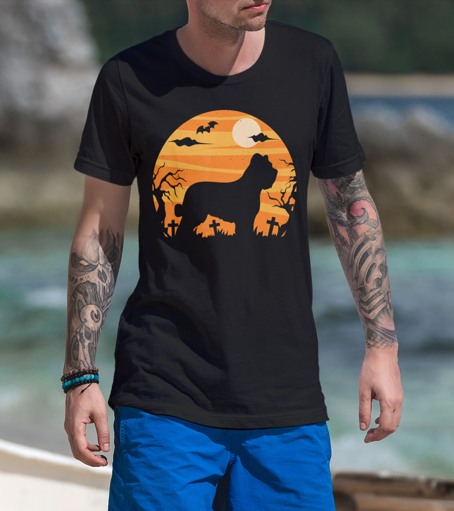 Briard Dog Halloween Moonlit Graveyard Scene T-Shirt