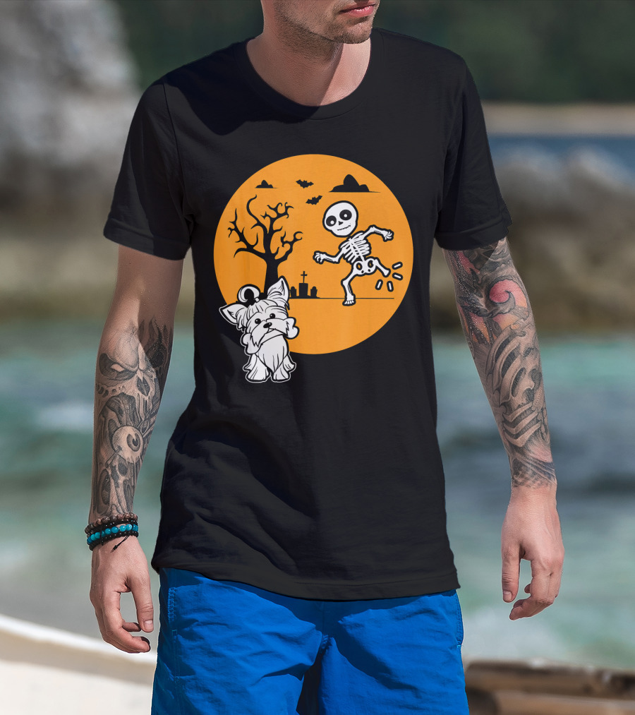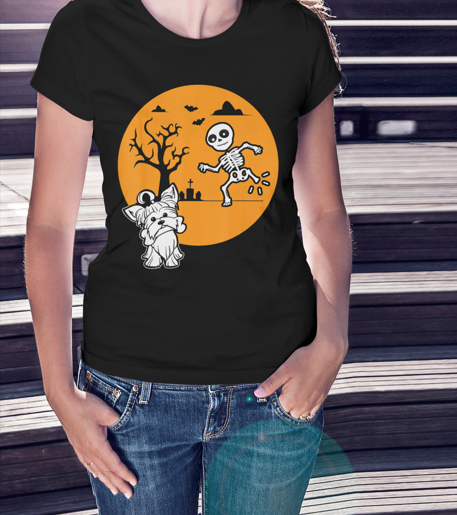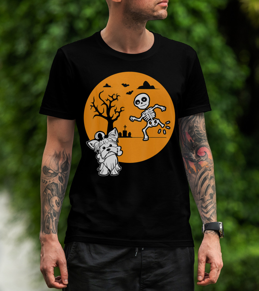 Yorkshire Terrier Halloween Costume Skeleton Dance Moon Bat Graveyard T-Shirt