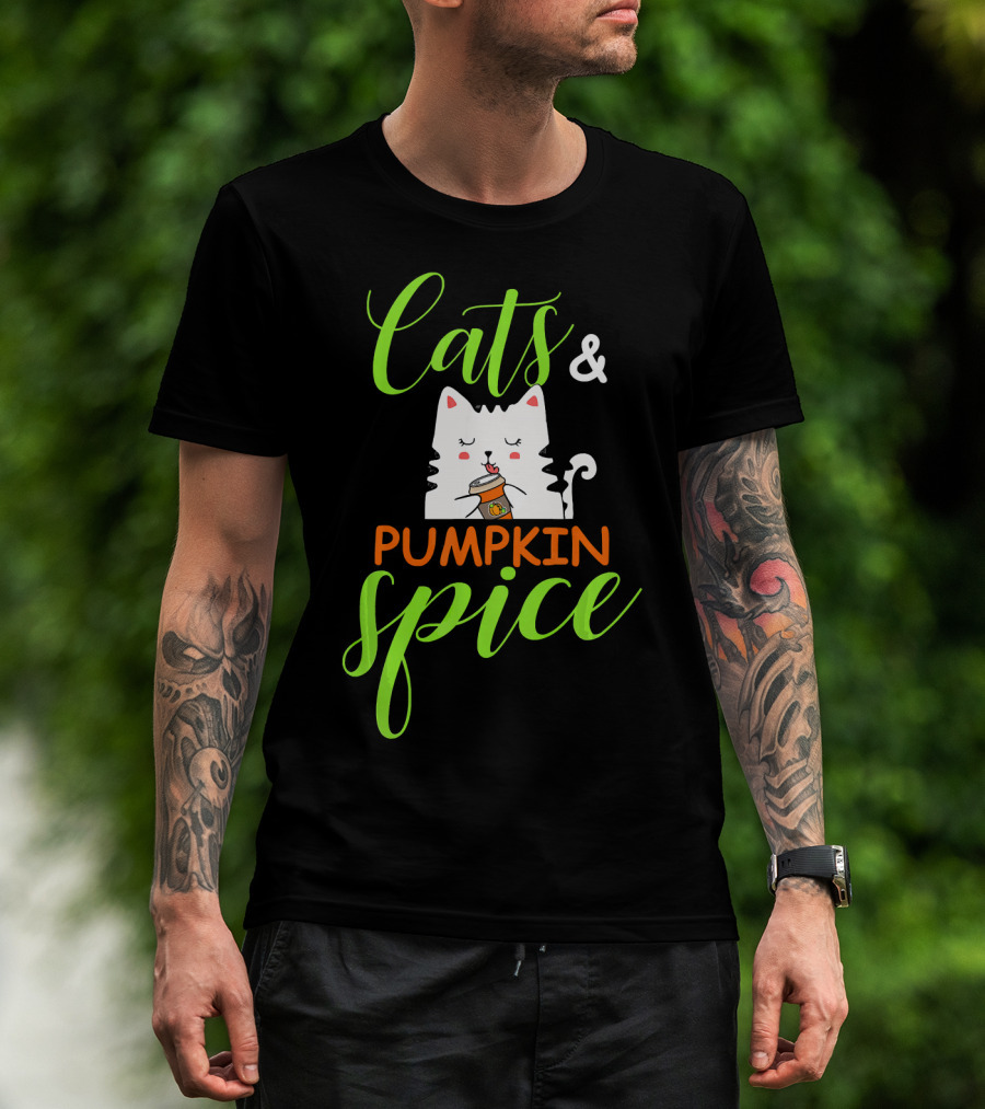 The Cats and Pumpkin Spice Fall Autumn Cozy Cat with Coffee Cup T-shirt is designed for everyday wear and a consistent fit. Fabric is pre-shrunk ring-spun cotton with durable stitching. See the size chart below for exact measurements.