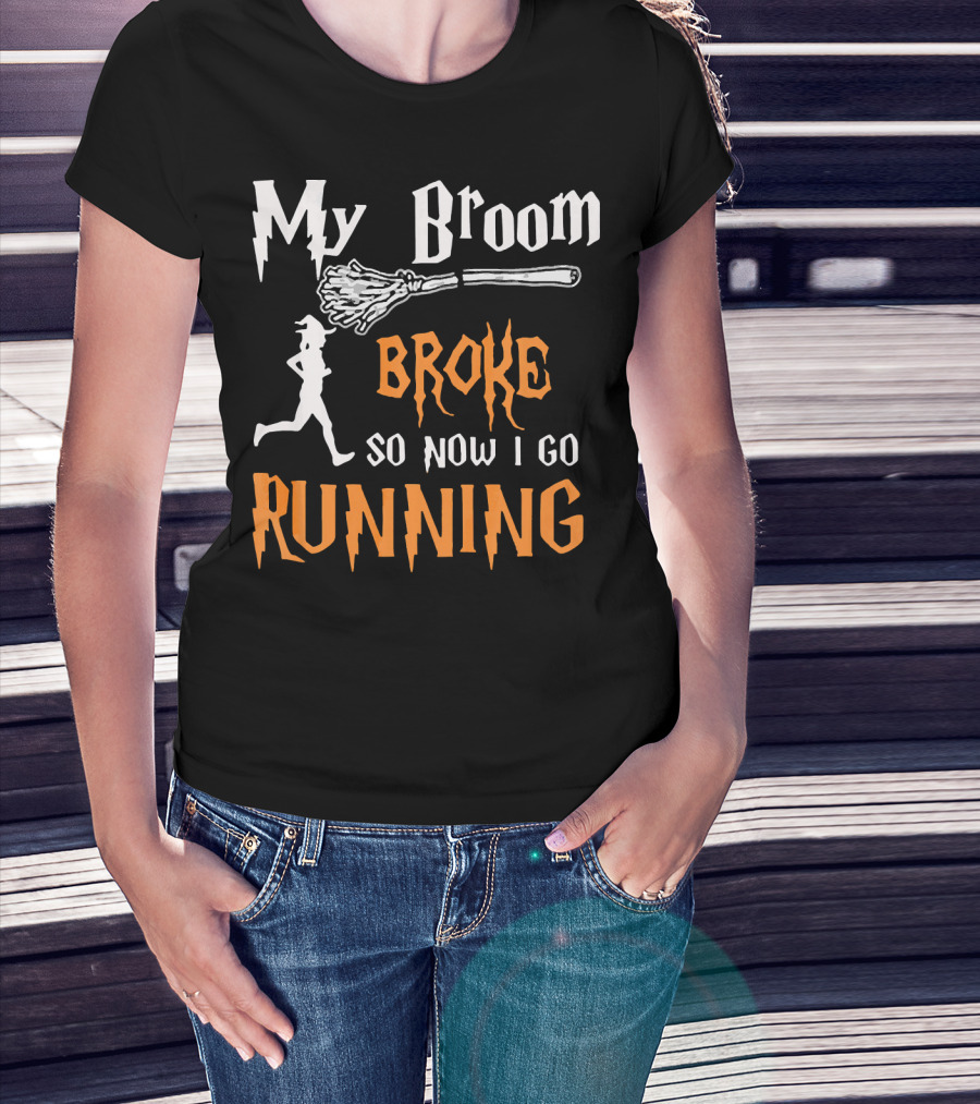 My Broom Broke So Now I Go Running Silhouette Witch Font T-Shirt
