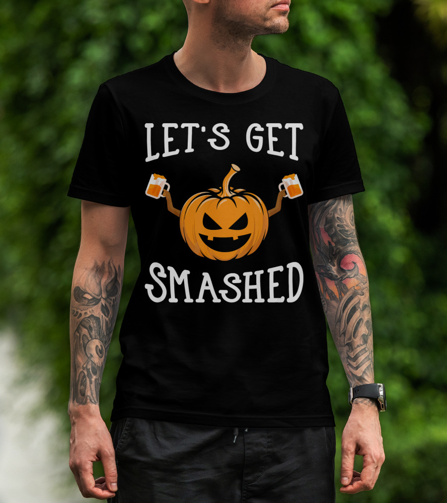 Let's Get Smashed Pumpkin Drinking Beer Costume T-Shirt
