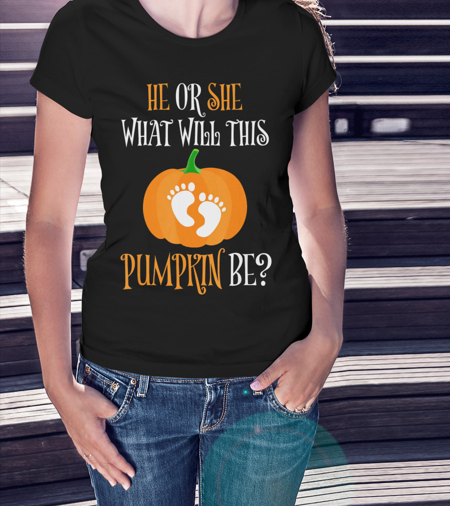 He Or She What Will This Pumpkin Be Gender Reveal Pregnancy T-Shirt