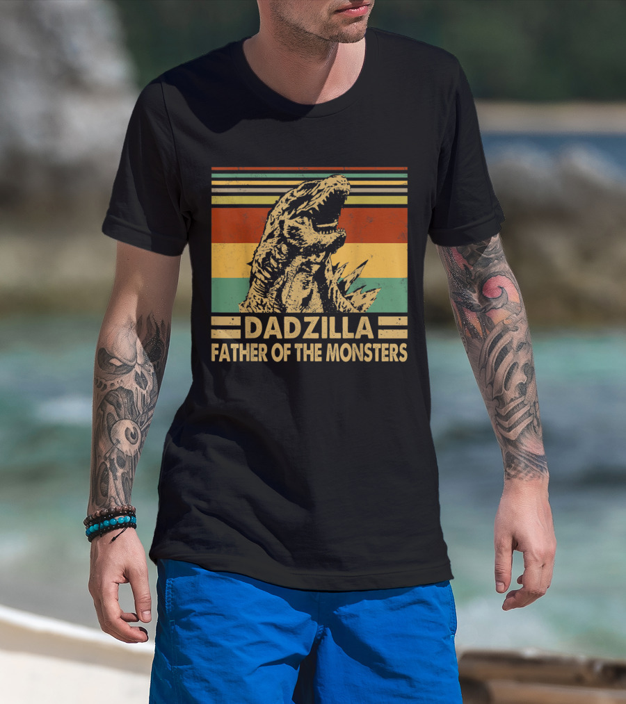 Dadzilla Father Of The Monsters Retro Stripes T-Shirt