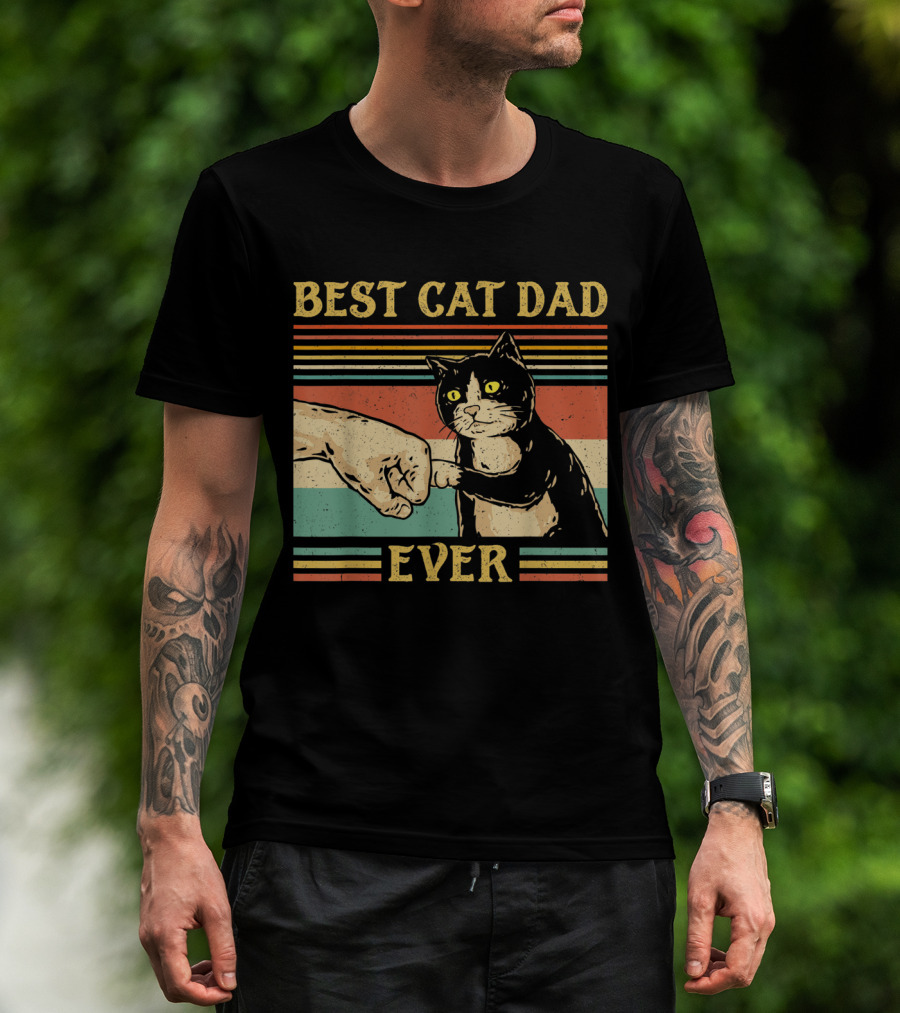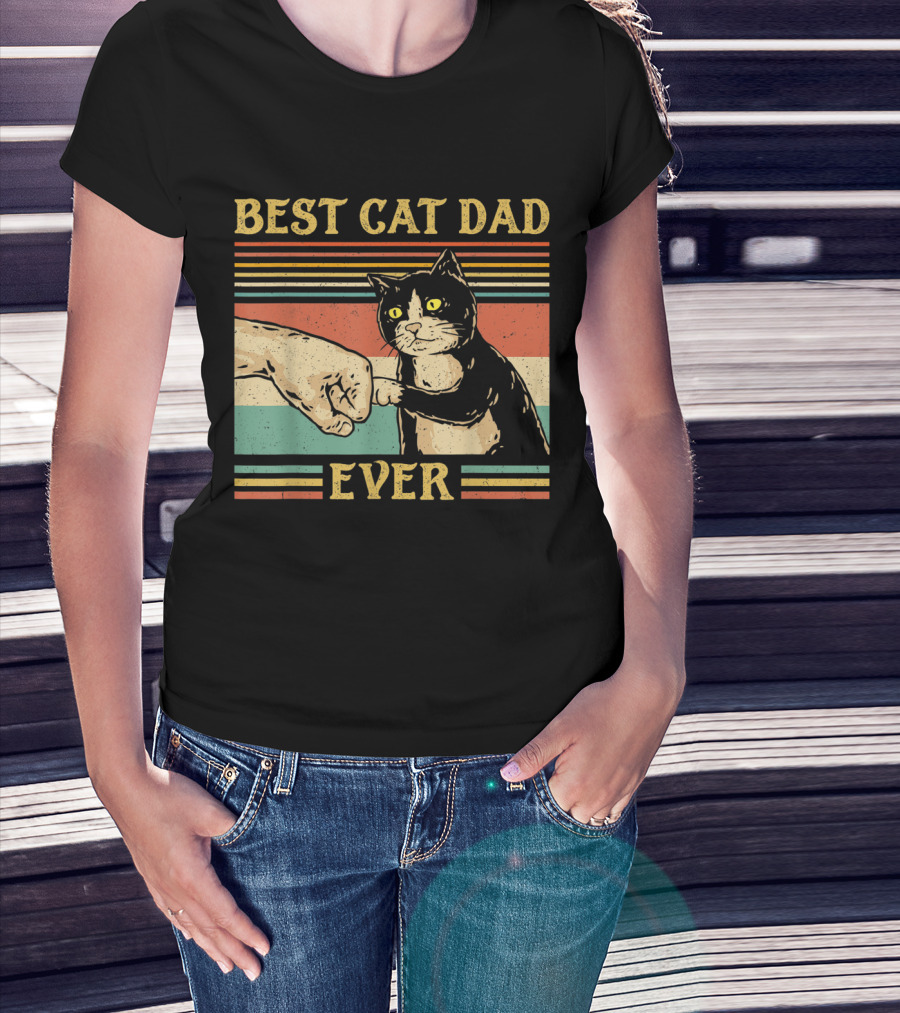 Best Cat Dad Ever Vintage Fist Bump Retro Stripes T-Shirt