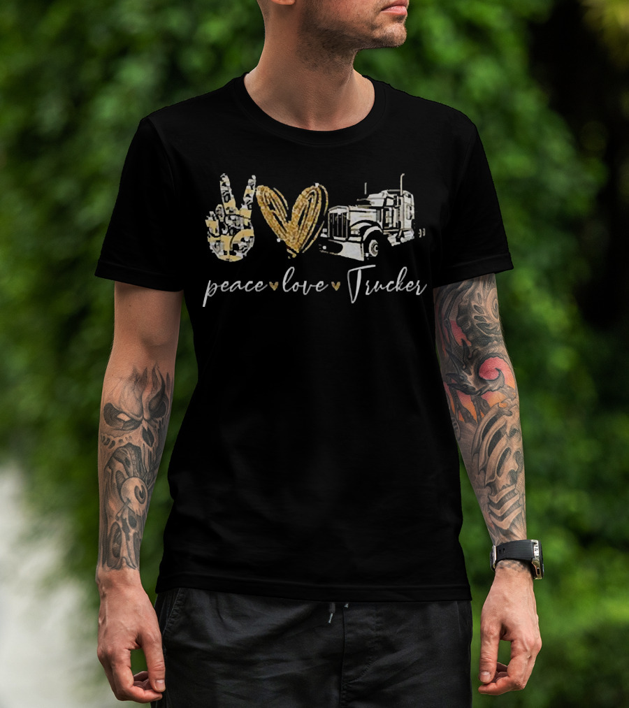 Peace Love Trucker Hand Gesture Heart Truck T-Shirt