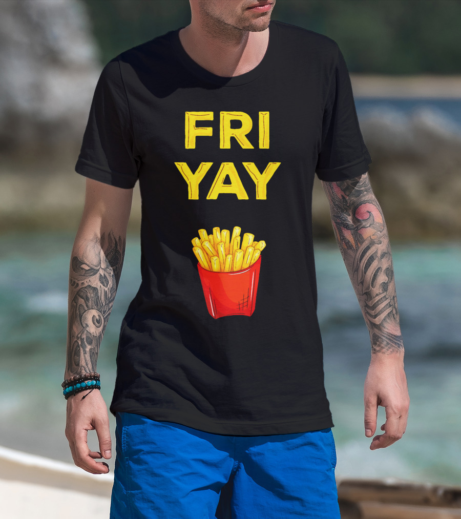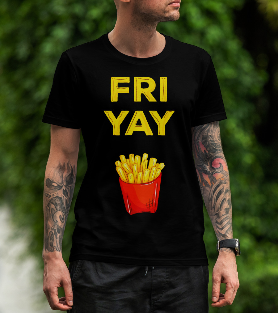 The FRI YAY Fries T-shirt is designed for everyday wear and a consistent fit. Fabric is pre-shrunk ring-spun cotton with durable stitching. See the size chart below for exact measurements.