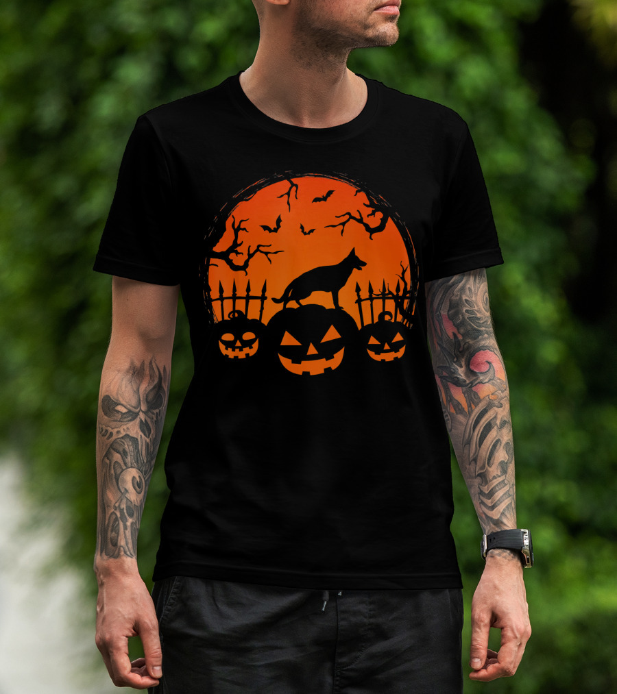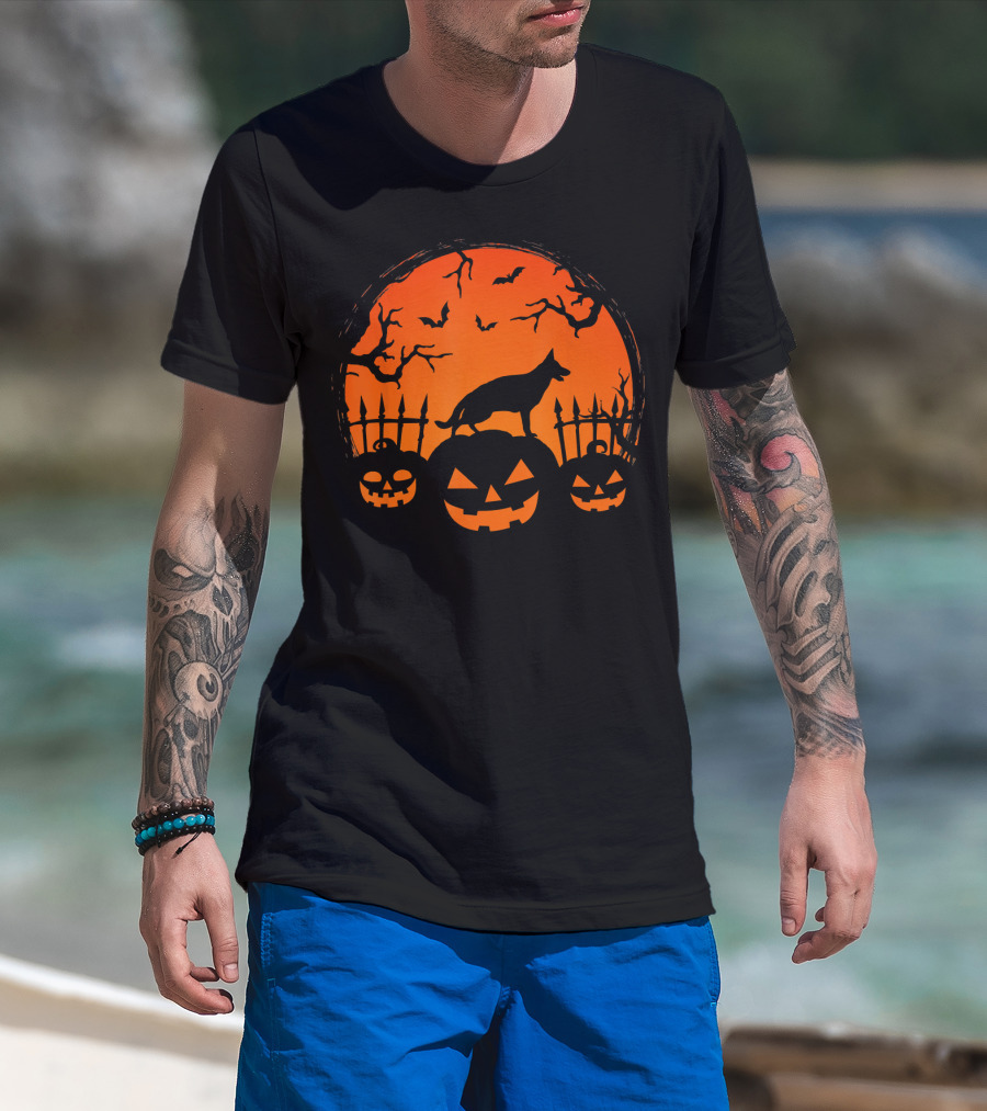Halloween Night Pumpkin German Shepherd Dog T-Shirt