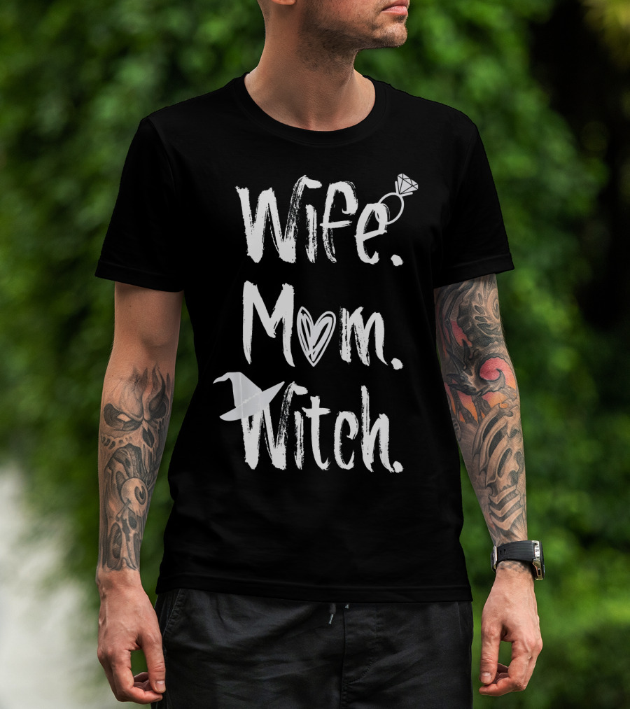The Wife Mom Witch Halloween Ring and Hat T-shirt is designed for everyday wear and a consistent fit. Fabric is pre-shrunk ring-spun cotton with durable stitching. See the size chart below for exact measurements.