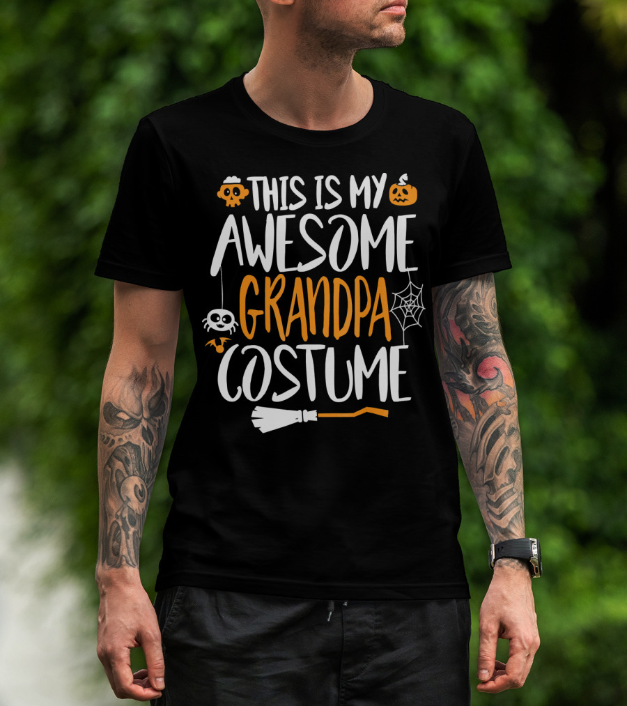 This Is My Awesome Grandpa Halloween Costume Pumpkin Spider Web Broomstick T-Shirt