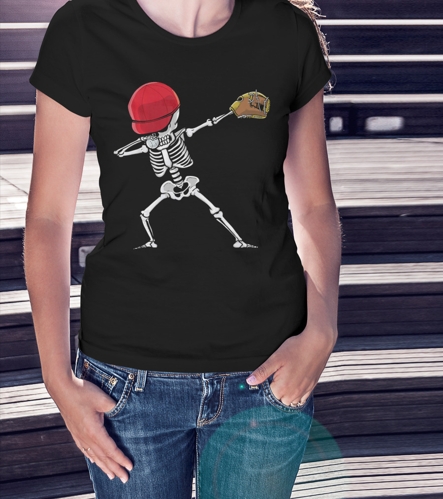 Skeleton Dabbing With Red Cap And Baseball Glove T-Shirt