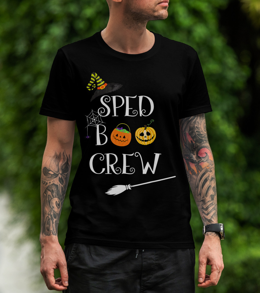 SPED BOO CREW Special Education Teacher Halloween Witch Hat Pumpkin Broom Decor T-Shirt
