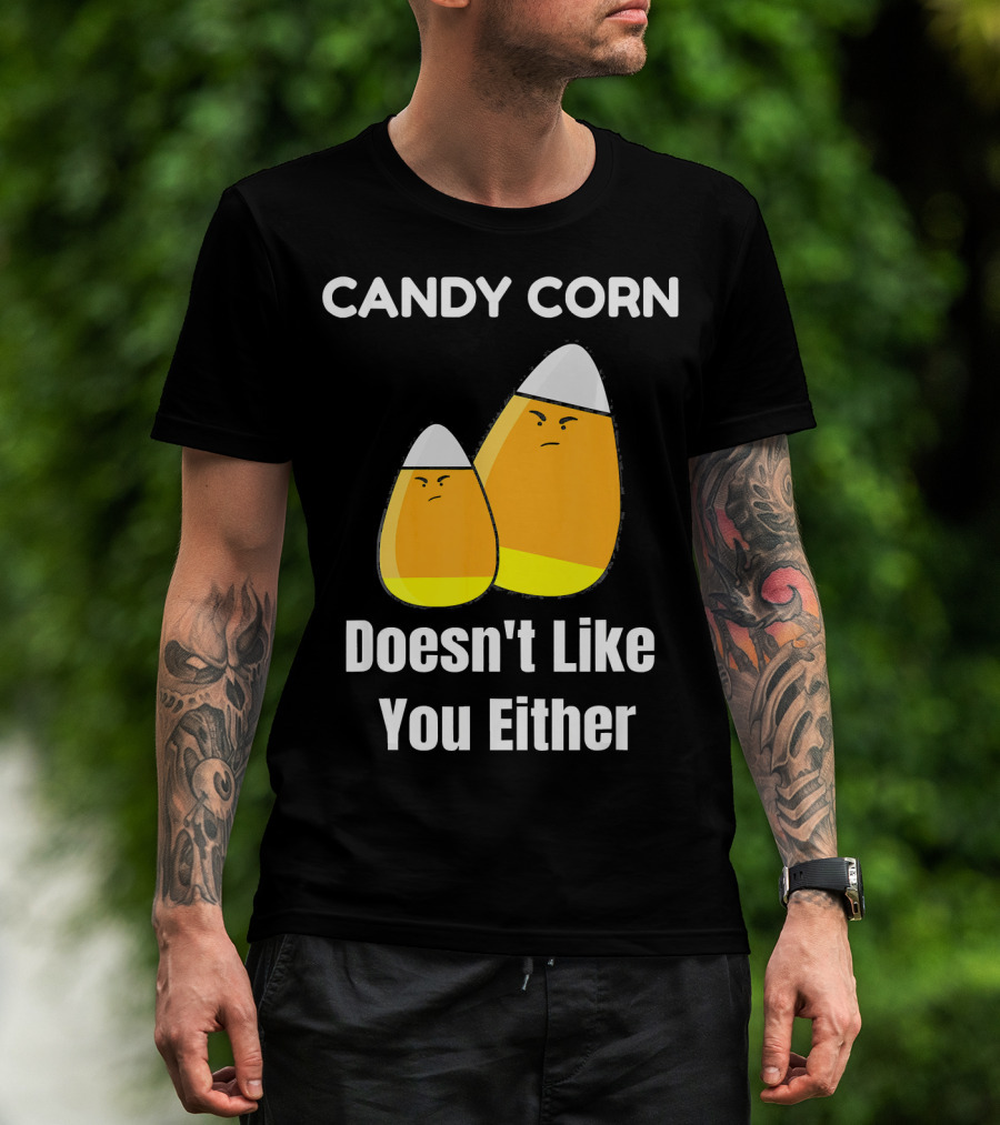 The Candy Corn Doesn't Like You Either T-shirt is designed for everyday wear and a consistent fit. Fabric is pre-shrunk ring-spun cotton with durable stitching. See the size chart below for exact measurements.